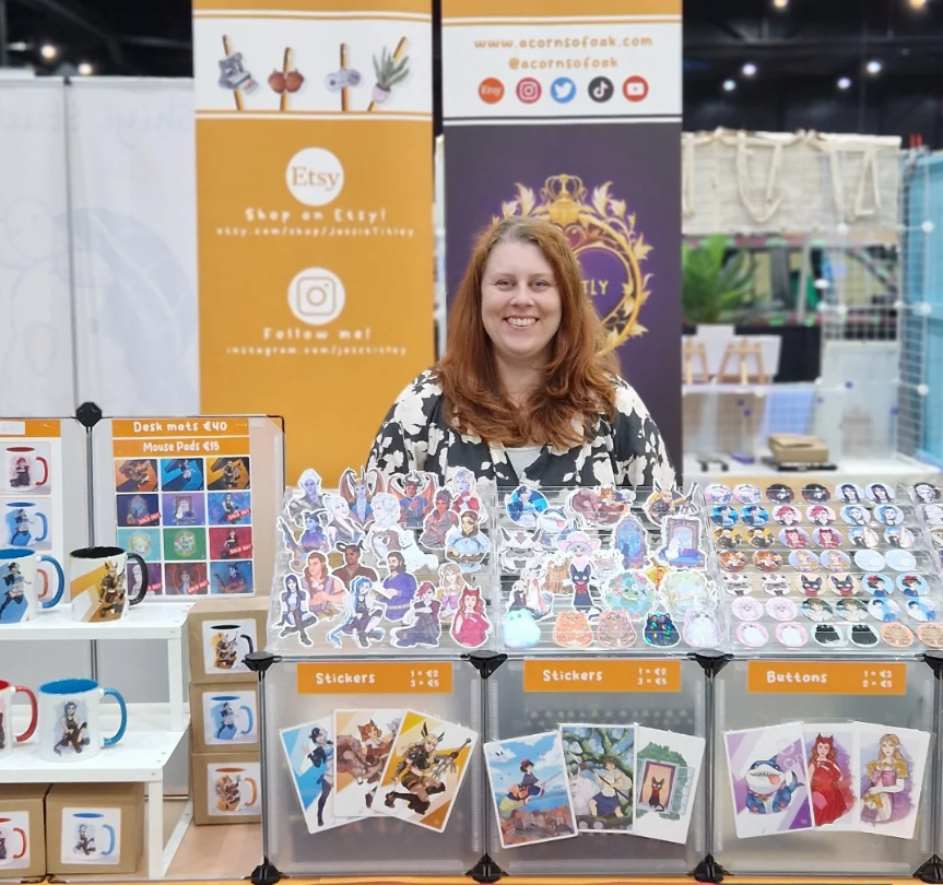With my personal illustrations, I develop a variety of products, including stickers, art prints and buttons, which I sell through my shop and at various events/conventions such as Heroes Made in Asia and Comic Con.