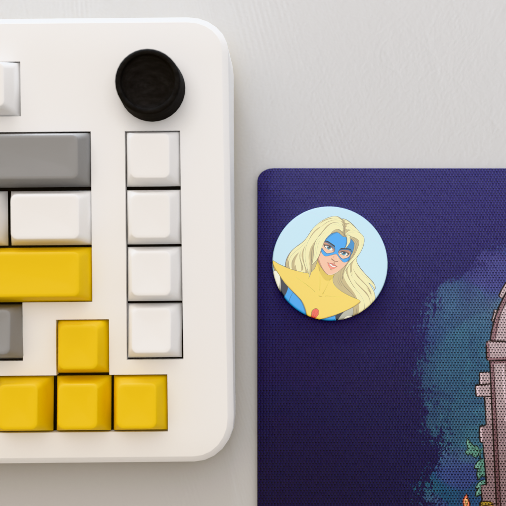A 45mm button with metal backing, perfect to pin on your bag, jacket, or wherever you like!