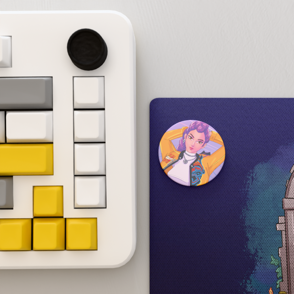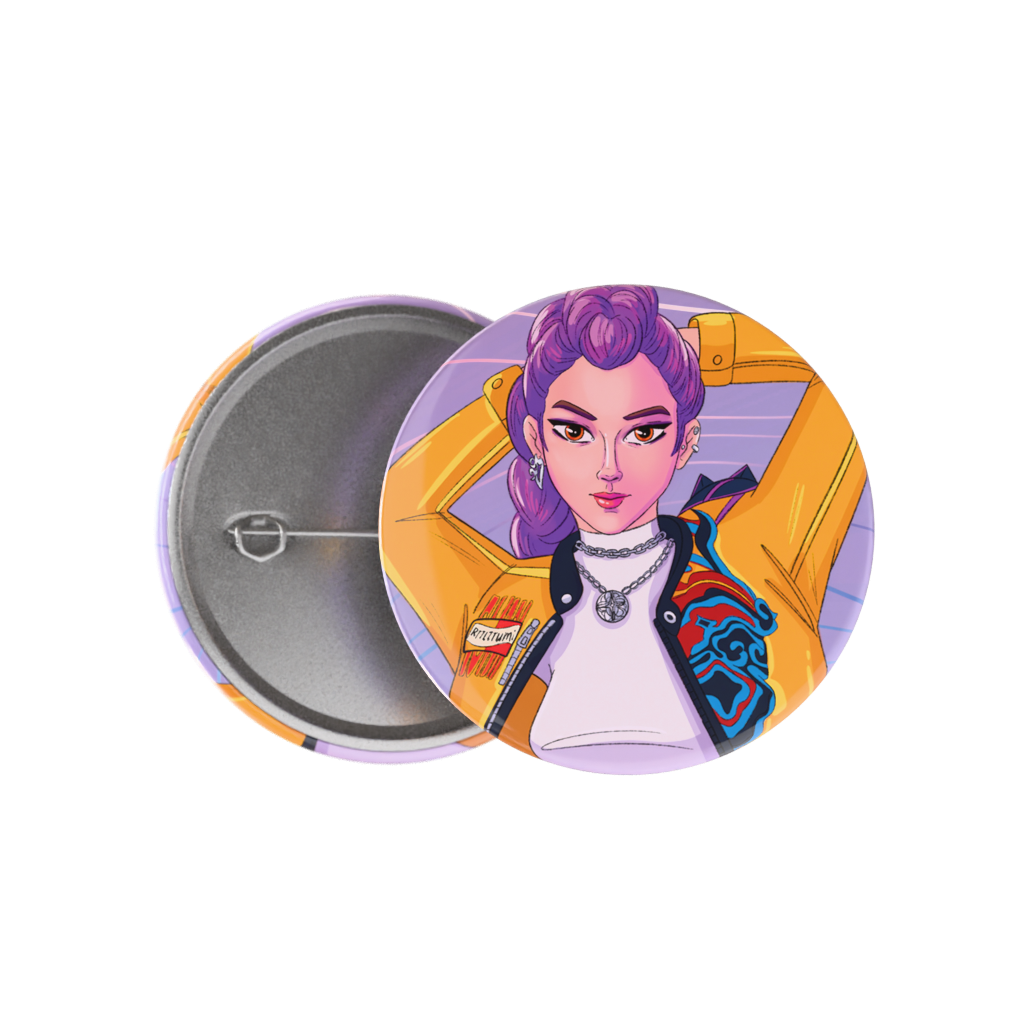 A 45mm button with metal backing, perfect to pin on your bag, jacket, or wherever you like!