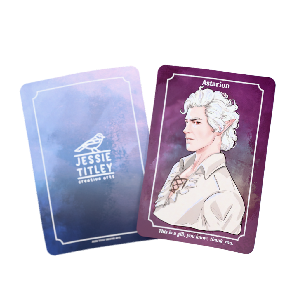 Every series comes with it's own personalised backing. The front features a full art illustration with a holographic cloud pattern and matte finish - perfect for collecting!