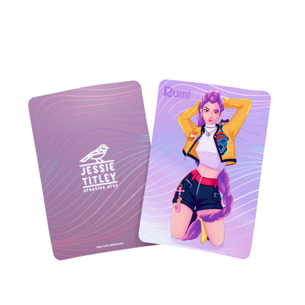 Every series comes with it's own personalised backing. The front features a full art illustration with a holographic cloud pattern and matte finish - perfect for collecting!